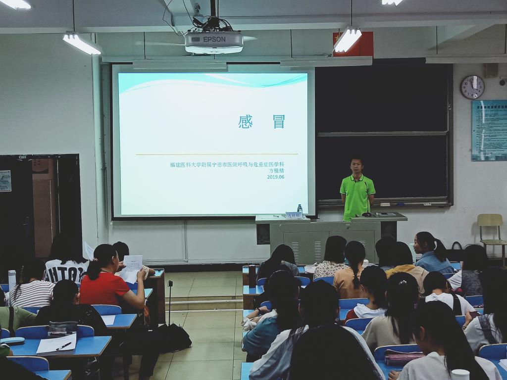 感冒是日常生活中比较常见的疾病,但我们并不是都真正了解感冒。6月3日下午,宁德市医院呼吸与危重症医学科方桂桔副主任医师应邀到我院开展《流行感冒与普通感冒》专题讲座,为我们详细的讲述了感冒这一常见疾病,我院师生100人参加了讲座。