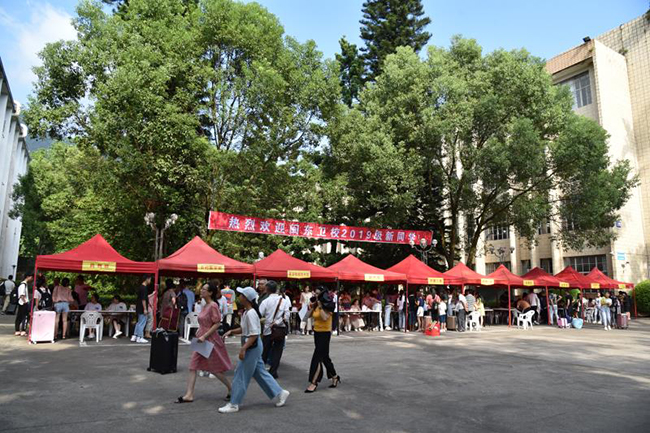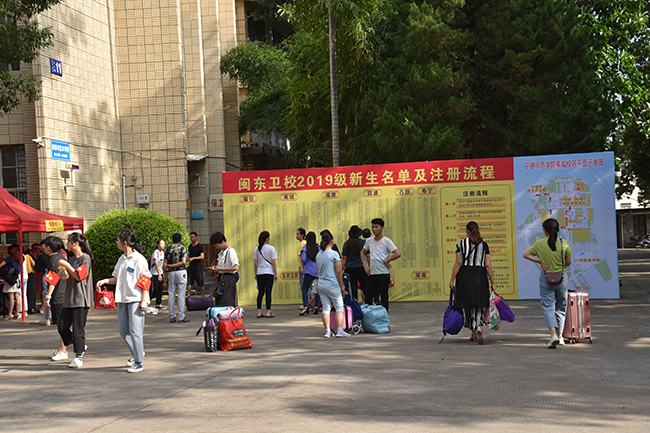 9月7日,宁德师院蕉城校区迎来了闽东卫校2019级新生报到。整洁的校园团锦簇,横幅标语以及示意图、引导牌把校园点缀得热烈喜庆。