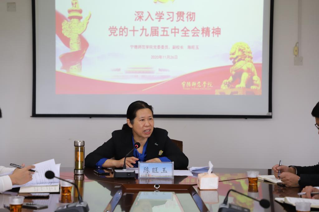 11月26日上午,校党委委员、副校长陈旺玉到所联系的我院教师第一党支部为党员师生作党的十九届五中全会精神宣讲。英国上市公司365领导班子成员、党员教师、辅导员、学生入党积极分子40多人听取了宣讲报告。