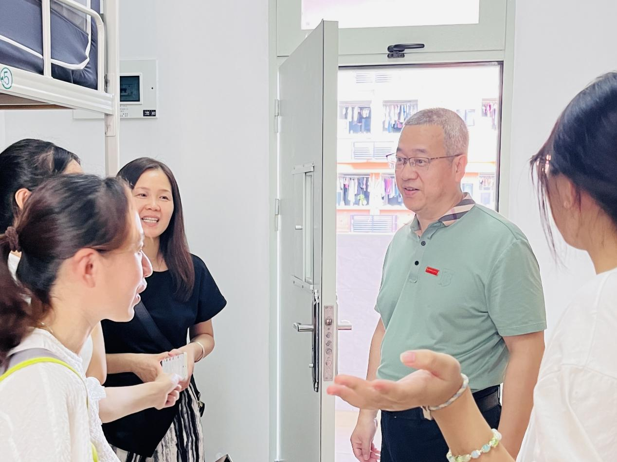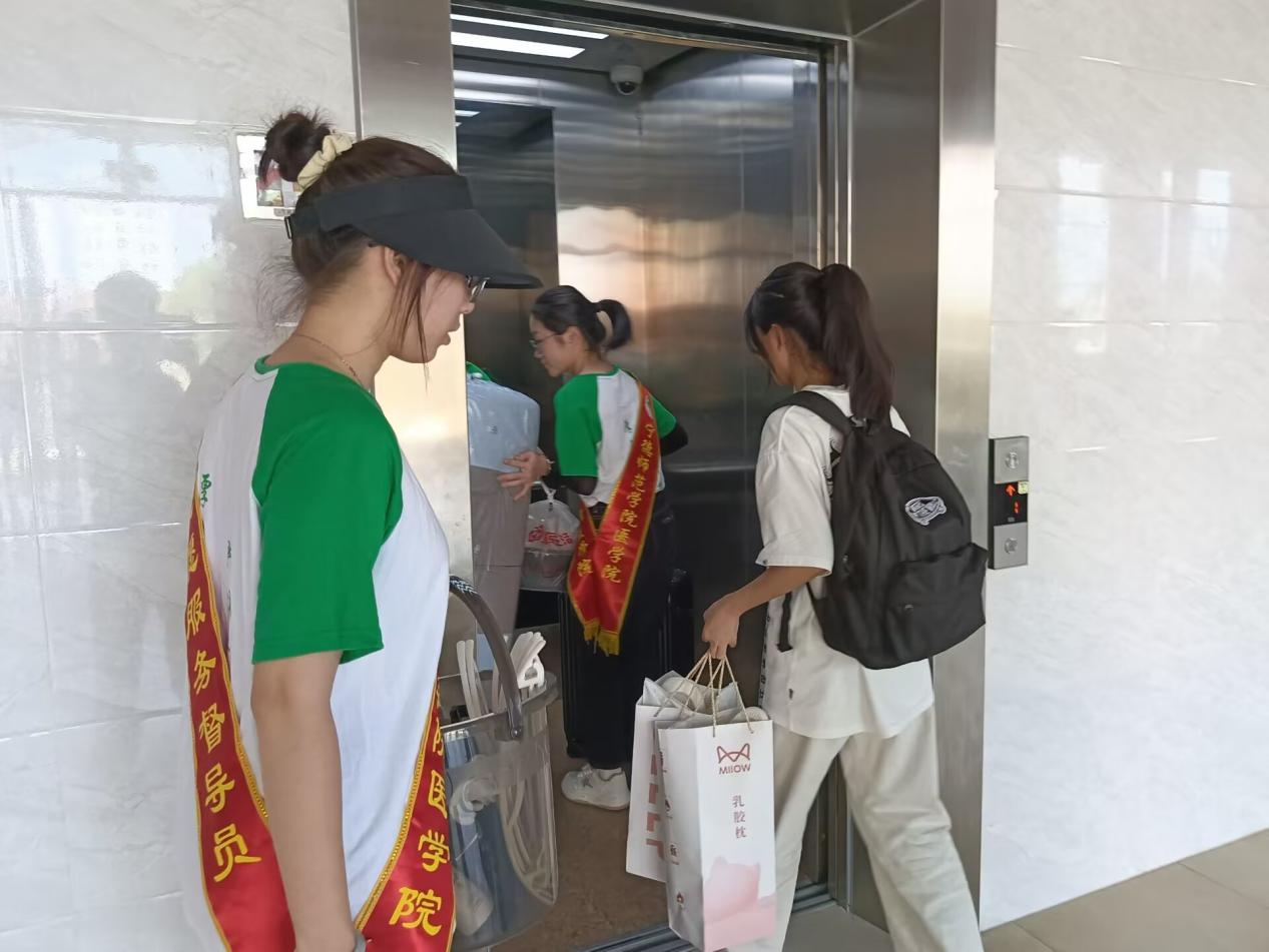 9月15日,我院领导在迎新点参与迎新工作,向新生和家长表示欢迎和问候,向工作人员和师生志愿者表示慰问。志愿者们热情地引导新生完成报到流程,帮助新生搬运行李至宿舍。