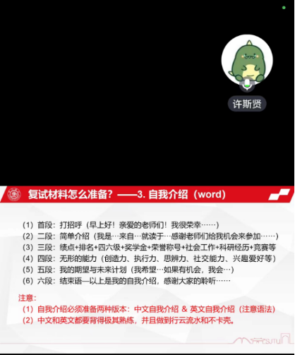 同学们表示此次分享会不仅提供了复试技巧指导,也为她们提供了有效的经验参考,对考研复试更有信心。