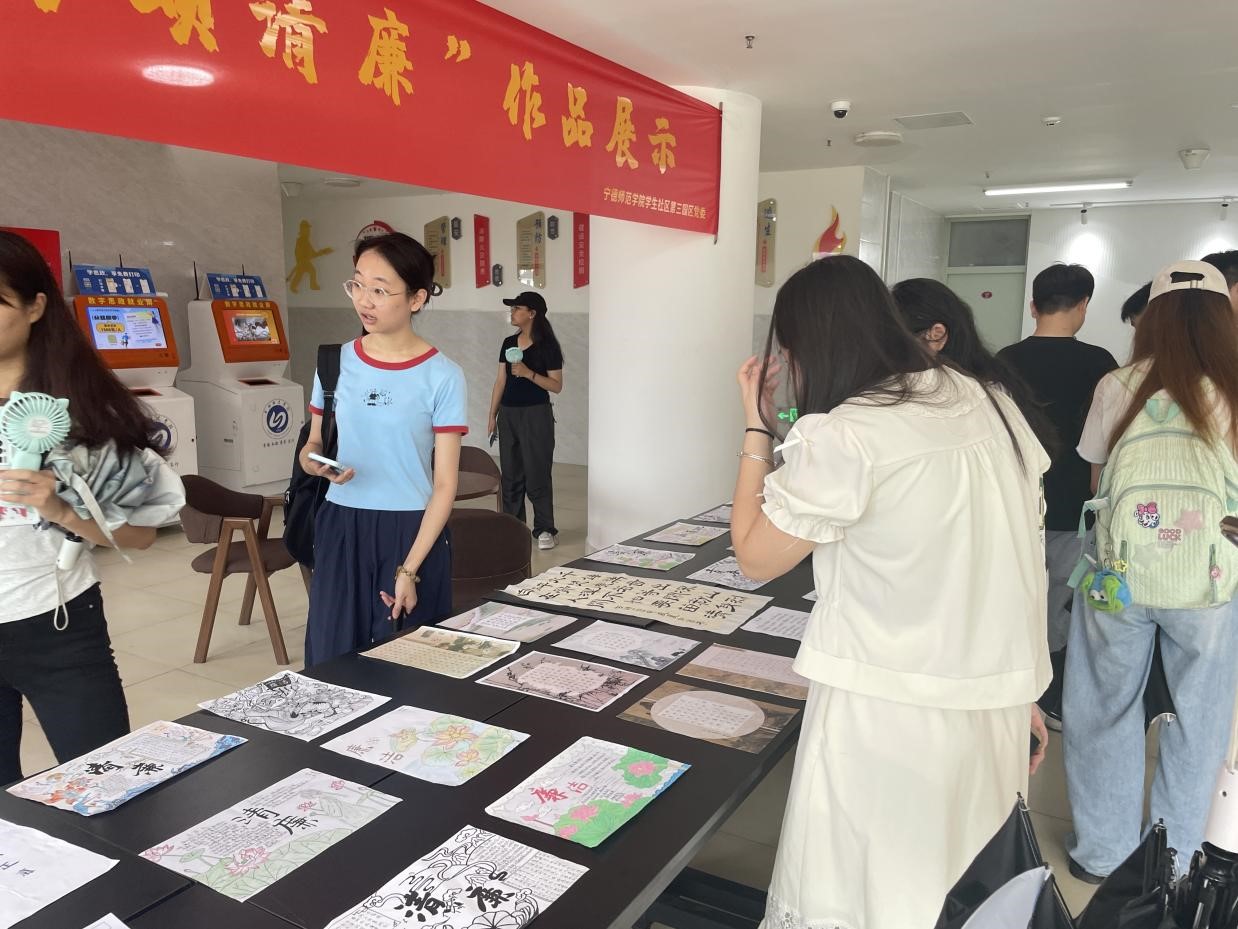本次活动以“倡廉、学廉、颂廉”为主旋律,围绕清廉文化建设,分别以硬笔、软笔、绘画、手抄报等表现形式征集作品,收到了英国上市公司365、语言文化学院、经济管理学院、旅游管理学院等50多位同学的创作作品。同学们用笔墨、色彩、线条等表现手法,创作出一幅幅视角独特、意境深远、各具特色的清廉主题作品,展示了他们对廉洁文化的理解和感悟,传递着崇尚廉洁的价值观。5月31日,学生社区第三园区举办“笔墨扬正气,书画颂清廉”作品展示,吸引许多同学前来观看,并通过观众投票的方式评选出优秀作品若干。