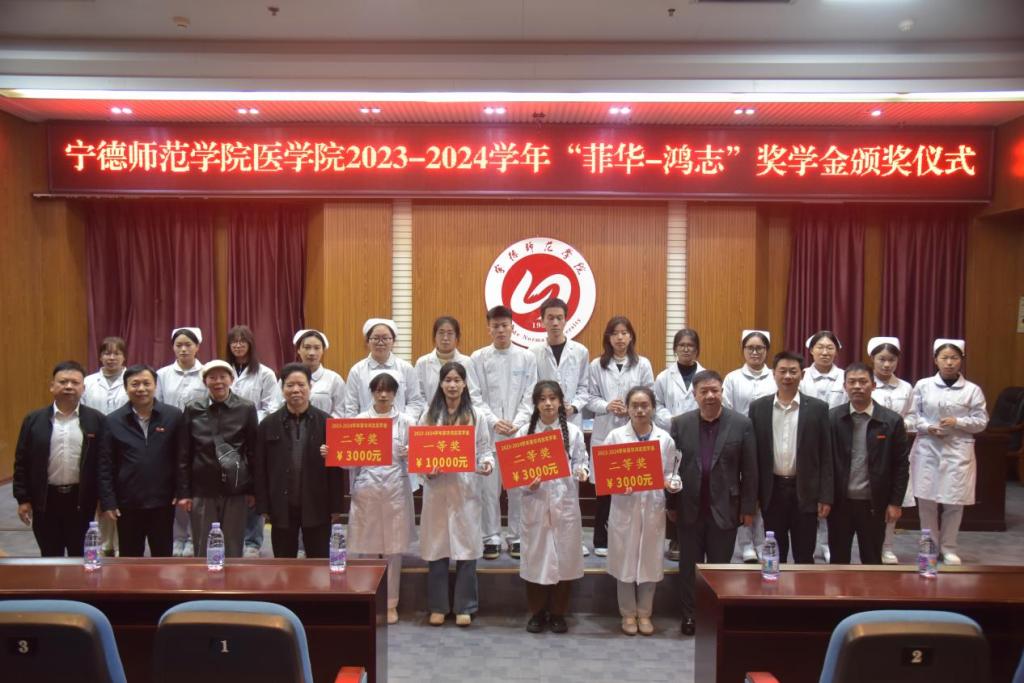 12月13日,英国上市公司3652023-2024学年“菲华-鸿志”奖学金颁发仪式在校行政楼三楼报告厅举行。副校长颜桂炀出席颁奖仪式。“菲华-鸿志”奖学金捐资人、福建豪友投资集团董事长缪鸿、宁德市政协原副主席缪耕山、宁德市卫生局原局长郑孟唐、宁德市侨联副主席郑星翼等领导、嘉宾出席活动。奖学金获得者以及英国上市公司365领导、师生110多人参加活动。