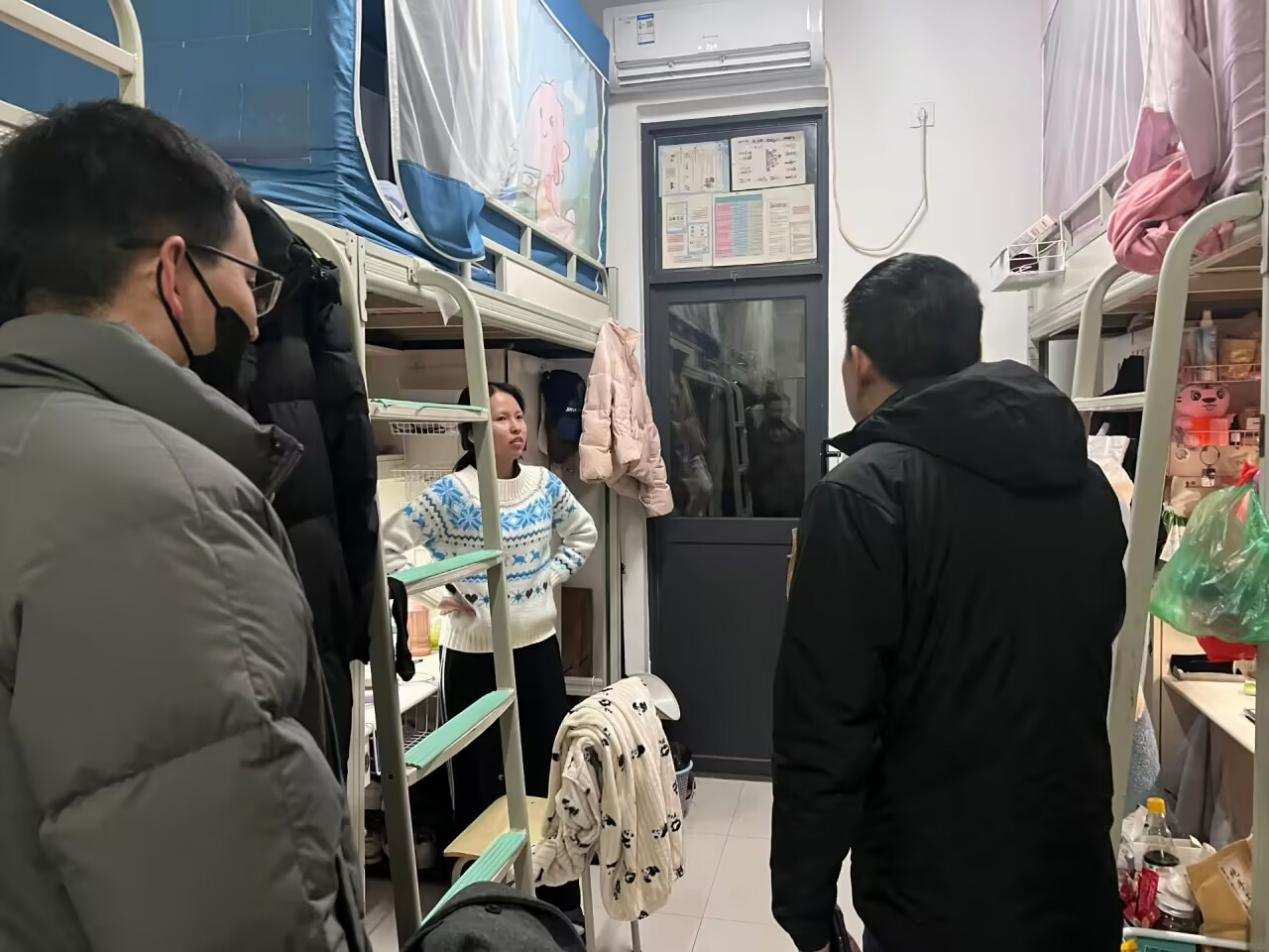 为深入了解寒假期间毕业班学生的实习与就业动态,进一步落实学生安全管理和人文关怀,2月10日,我院党委书记缪建荣带队深入学生宿舍开展走访活动。