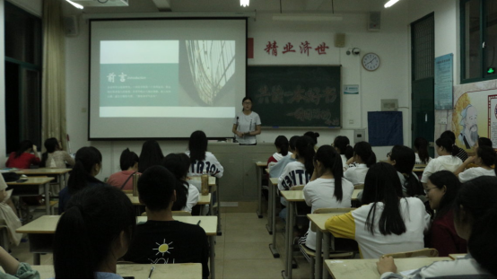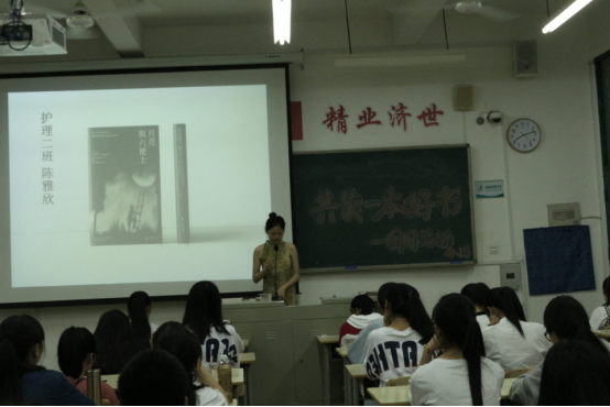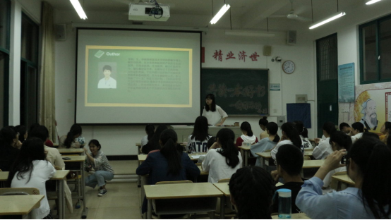 “阅读就像一个人的呼吸,即使不喜欢也不能不做”出自哈珀的《杀死一只知更鸟》。这本书以一个小女孩的视角来讲述了在美国深南存在的种族歧视。它以独特的视角,扣人心弦的剧情以及鲜明的主题吸引了在场同学们的视线。而《月亮与六便士》则讲述了一个离我们更近的事实:我们是应该去追求心中的月亮还是抓紧现实中的六便士?我相信每个人的心中都会有不一样的答案。