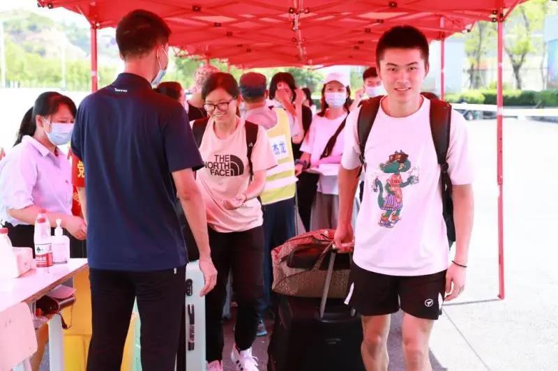 一大早,院领导、辅导员和志愿者们就来到校门口,用亲切的笑容和贴心的服务迎接每一位学生的归来。工作人员对每一位学生进行体温检测、健康码核验、口罩更换、洗手消毒等流程,耐心细致、一丝不苟。同学们有序登上校园摆渡车,载着大家回到阔别已久的学生宿舍。回到亲切熟悉的校园,同学们的眼神中不自觉流露出激动和喜悦。