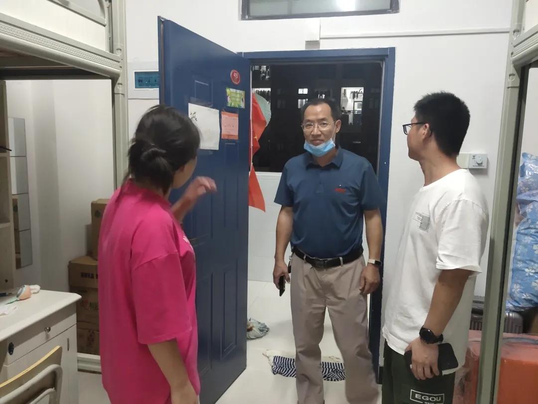 当天晚上,我院领导带队走访学生宿舍,询问学生近况,了解学生需求,要求大家要遵守学校疫情防控纪律,认真落实各项防疫措施,同时尽快调整好生活作息,以健康乐观的心态投入新学期的教学生活。