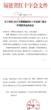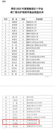 近日,2022年度福建省红十字会南丁格尔护理奖学基金奖励名单公布,我院许琇琇、杨迪两位同学获得奖励。