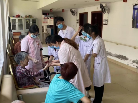 在本次为期十天的社会实践中,同学们不仅熟悉了金泰园养老院环境和布局以便于服务老人工作,并且在护士的指导下,学习了血糖的测量、氧气瓶的使用以及胰岛素的注射,为老人们提供细心服务,还为不同年龄段的老人进行健康评估。同学们的到来,给养老院增添了欢声笑语,让在这里的老人们感受到政府和社会的温暖。通过与老人们的交谈和陪伴,同学们深刻体会到奉献所带来的温暖与快乐,也从中学习到了很多知识和技能。