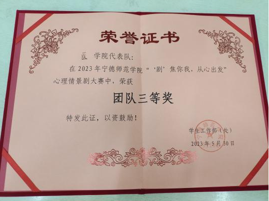 在笑脸分享活动中,同学们用镜头定格生活美好的瞬间,用相片记录最真挚的笑脸,增强了学生积极乐观的心态。在“春日暖阳,心灵归港”活动中,通过征集校园生活vlog,丰富了校园生活,共同营造积极向上的校园氛围。在“‘剧’焦你我,从心出发”校园心理情景剧大赛中,我院学子创作的作品《悔》以大学生非法校园贷为主题,在生动自然的表演中告诫当今大学生要树立正确的消费观,不盲目攀比,提高自控能力,增强法律意识,拒绝校园贷,荣获三等奖。