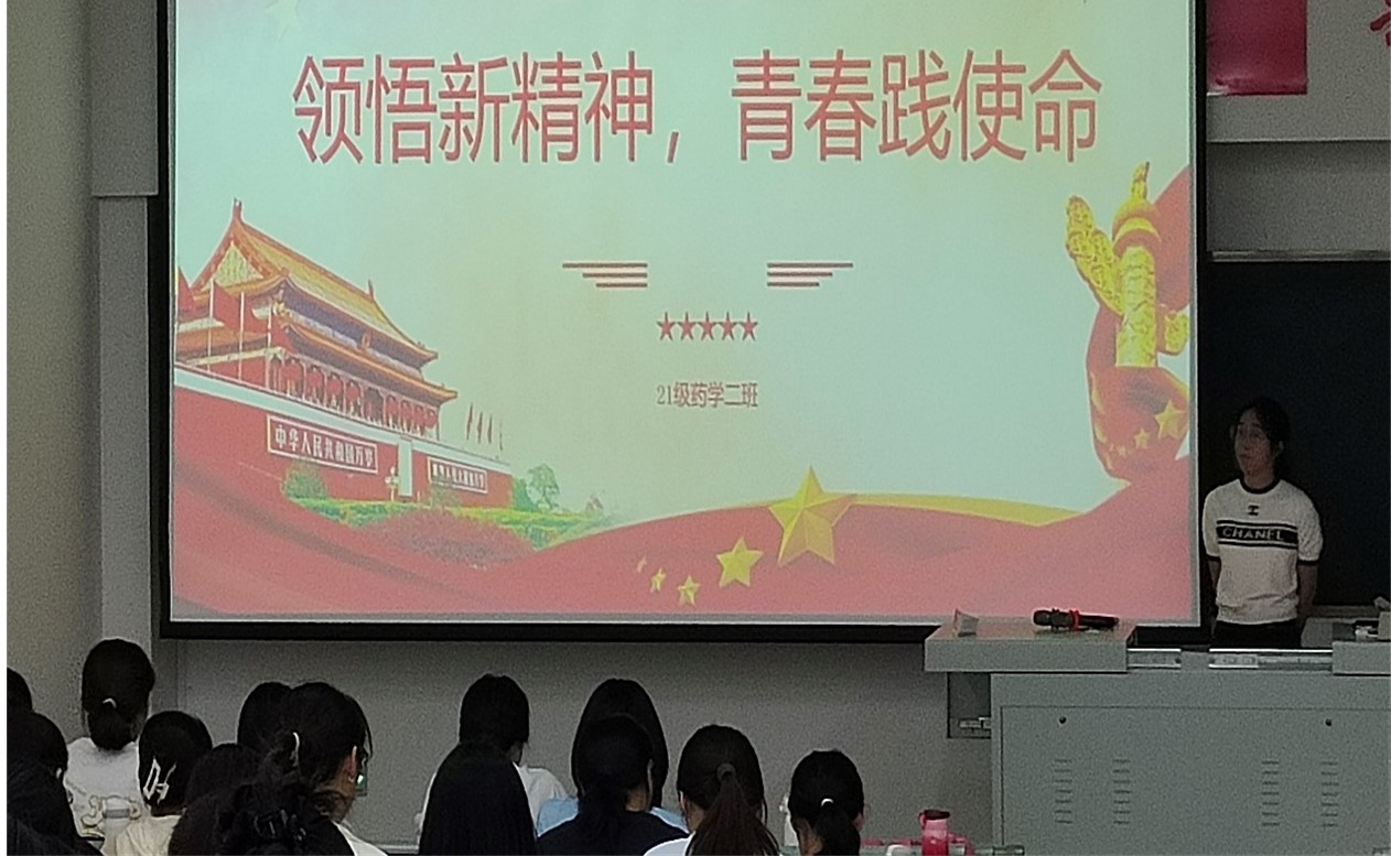 活动中,各班团支书向同学们解读了新时代新精神的内涵,播放相关视频回顾了我国近年来在科技、教育、文化等领域的重大突破,并且介绍了与新精神相关的背景故事,引领广大学生志存高远,心怀国家,明确自身在新时代背景下所肩负的青春使命,进一步增强青年的责任感和使命感,以新精神新面貌进行学习与生活,将理想信念教育和主题教育成果转化为奋进动力的决心。