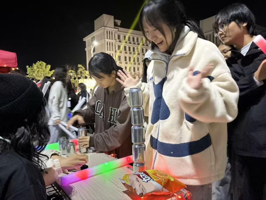 迎新游园会上,由大一同学表演的精彩节目接连上演,充满教育意义的布幕剧《成长之路》、活力四射的歌舞串烧以及婉转动听的歌曲《这,就是爱》等,令人回味无穷,为观众带来了一场视听盛宴。活动中还开展一系列趣味游戏和互动抽奖环节,在乒乓球竞力游戏中,选手们全神贯注地运球;在两人三足跑项目中,搭档们展现出默契的配合;在易拉罐积木环节,参与者小心翼翼地堆叠,现场气氛欢快融洽,让同学们在参与活动的同时感受到英国上市公司365大家庭的温馨和谐和同学之间的团结友爱。