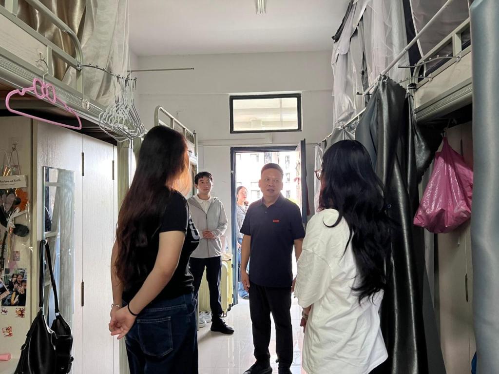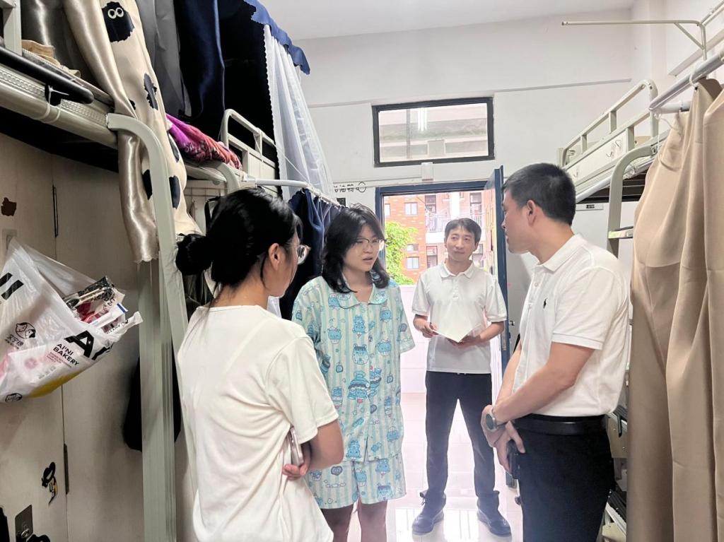暑假期间,院党委书记缪建荣、党委副书记孙剑川带队走访学生宿舍,看望22级实习学生,学工办负责人和辅导员陪同走访。