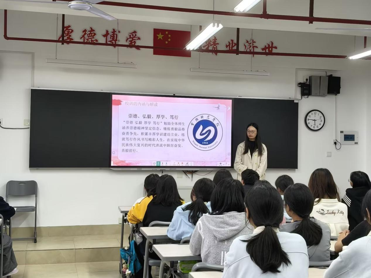 班会上,班主任对校训内容进行了解读。将“崇德、弘毅、厚学、笃行”校训与医学专业紧密结合,阐述其在涵养医德、深耕专业、严谨治学、知行合一等方面的联系。同时立足时代视角,结合如今社会对医学人才的要求,深刻阐述了校训与时代的链接,总结了校训在构成时代涵养体系的作用。