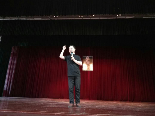 授帽仪式结束,由吴谦老师进行了“奋斗的青春最美丽”的主题演讲,他以脱口秀即兴演讲的形式,从“青春、梦想、奋斗”三个方面展开,以通俗易懂而又激情四射的语言进行演讲,与台下观众产生共鸣,赢得阵阵掌声。