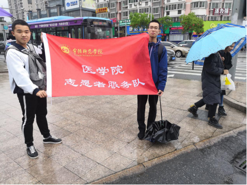在活动准备阶段,药学班的各班委积极安排相关事宜,分配人员,为正式开展志愿活动做良好的准备。在活动进行的过程中,各位同学们积极配合,拉起旗帜提醒行人注意交通安全,仔细的观察行人的行为,对于一些违反交通规定的一些行为及时给予指正,并教授他们一些正确的做法。同时,还分配了相应的人员督导行人,提醒他们的一些不当行为,比如不要闯红灯,不横穿马路等等。同学们的这些行为也得到了人们的广泛认可。虽然在这一天,天公不作美,下起了蒙蒙细雨,但这抵挡不住同学们一片想要为人民服务的心。