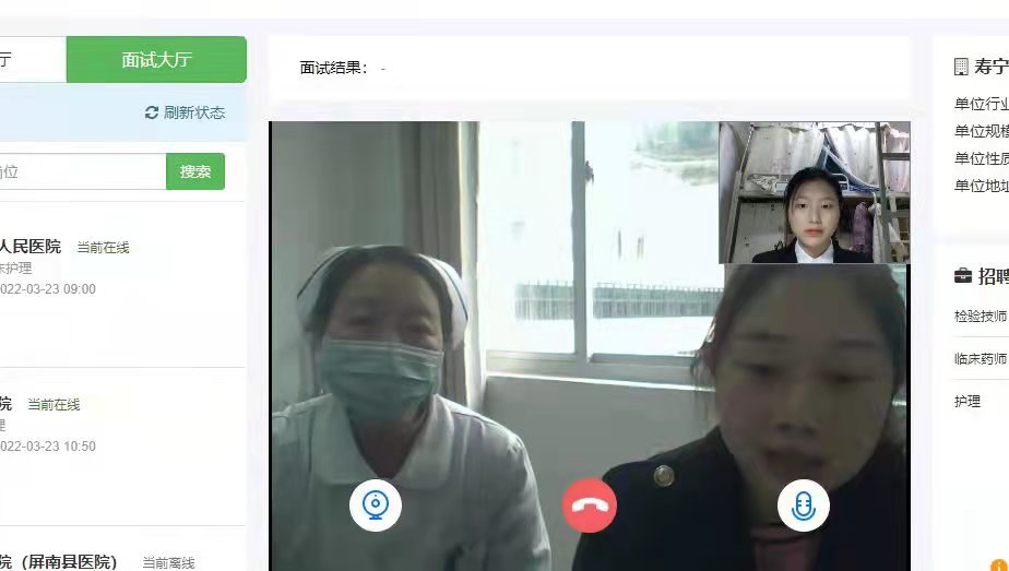 为应对疫情带来的不利影响,帮助毕业生足不出户对接就业岗位,促进毕业生更加充分更高质量就业。在校学工处和就业指导中心的大力支持下,3月23日上午我院举办2022届毕业生网络招聘会(医学专场)。我院护理、药学、医学检验技术专业首届毕业生190人参加应聘。