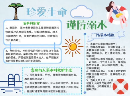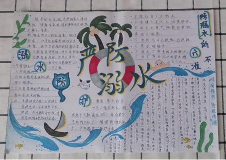 为提高同学们安全防范意识,杜绝溺水事故的发生,同时丰富同学们的假期生活,7月10日至7月17日,我院开展“珍爱生命,谨防溺水”主题手抄报及海报设计活动。