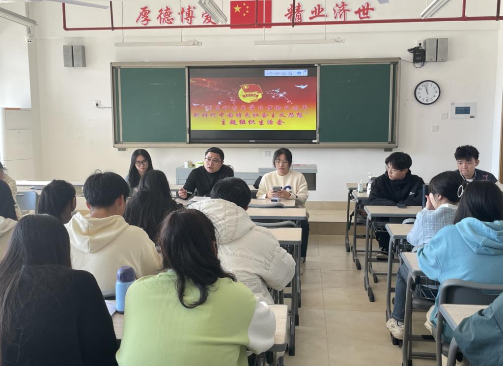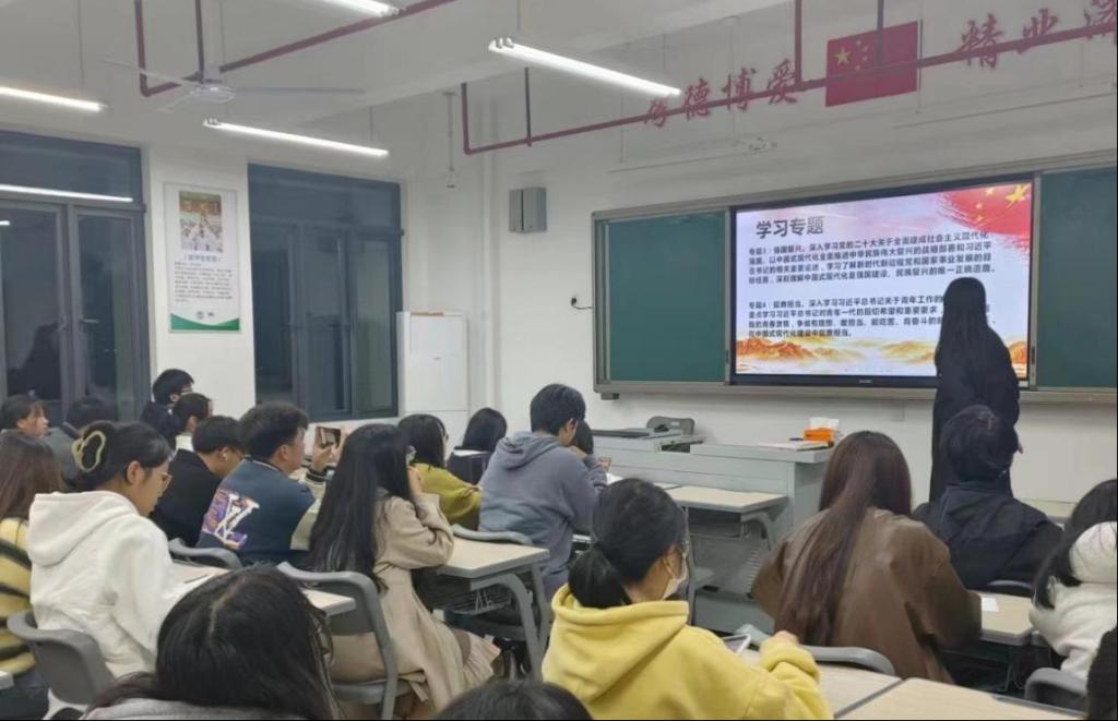 在班级团支部开展的主题学习沙龙活动上,同学们学习《习近平与大学生朋友们》第二十八篇、《习近平两次到校为我们作形势报告政策》、《习近平新时代中国特色社会主义思想专题摘编》等著作,通过班级抽查提问方式,进行思辨研讨、启发理解,引领团员青年自觉沿着习近平总书记指引的方向茁壮成长,扛起时代责任。