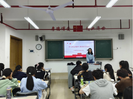 在主题班会上,辅导员和学生一起学习和两会精神,特别是学习习近平总书记重要讲话精神和政府工作报告中关于教育和青年发展的内容,并开展热烈讨论。大家纷纷表示,对过去一年经济社会发展取得的成绩倍感振奋,对教育改革发展取得的新进展欢欣鼓舞,对未来经济社会和教育事业发展充满期待。