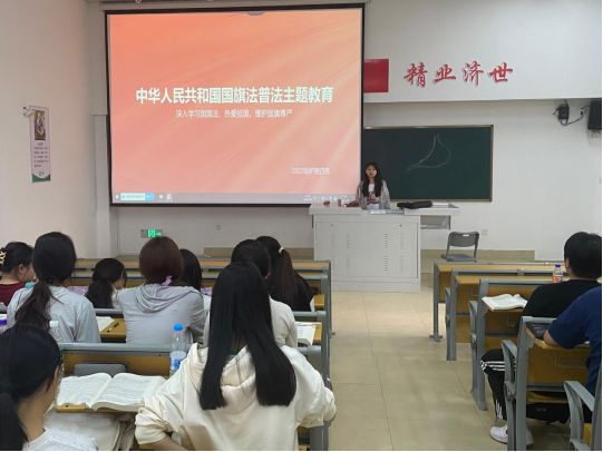 本次活动以班级为单位,各班宣传委员通过PPT讲解的形式介绍了中华人民共和国国旗的设计,并对国旗法的各项条款进行了详细解读,通过生动的案例和故事,让学生们深刻体会到国旗作为国家象征的重要性和庄严性,加深了同学们对国旗法的印象,帮助同学们深入了解我国的国旗法。同时针对学生宿舍、教室等场所开展国旗使用情况自查,引导学生树立正确国旗意识。