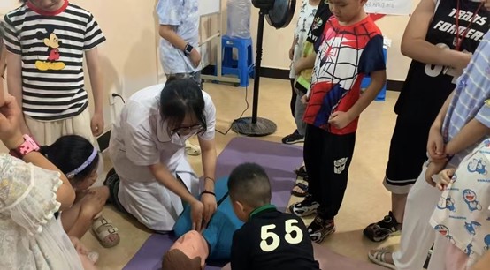 本次活动内容涵盖了学科辅导、兴趣培养、心理健康教育等多个方面。活动流程经过精心设计,确保了教育性和趣味性的有机结合,活动主要以培养孩子们的急救知识为主,组织急救知识主题课堂,讲授心肺复苏术和常见外伤等处理、包扎方法,深度与医学知识相结合,让孩子们学会如何合理应对生活中遇到的急救问题。