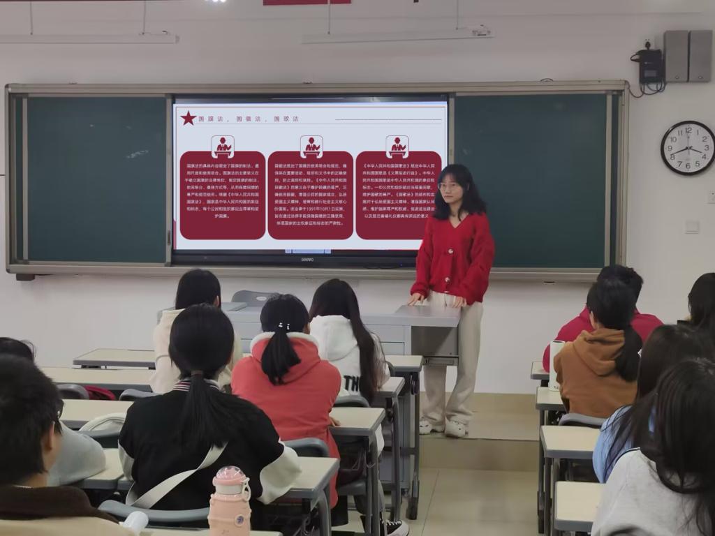 本次班会围绕宪法的重要性、宪法条例、观看“宪法晨读”直播开展。班主任引导学生们深入学习国旗法、国歌法、国徽法、爱国主义教育法、反有组织犯罪法等相关法律知识,着重指出国旗、国歌、国徽是国家的象征和标志,让学生们深知宪法在日常生活中的实际应用价值。通过具体案例,强调宪法是党和人民意志的集中体现,是治国理政的总章程,同学们对宪法的认识由抽象概念转变为具体生活实践。师生一起观看“宪法晨读”活动的直播,持续推进“宪法卫士”网络学习,进一步增强同学们法治意识,激发学子们法治热情。