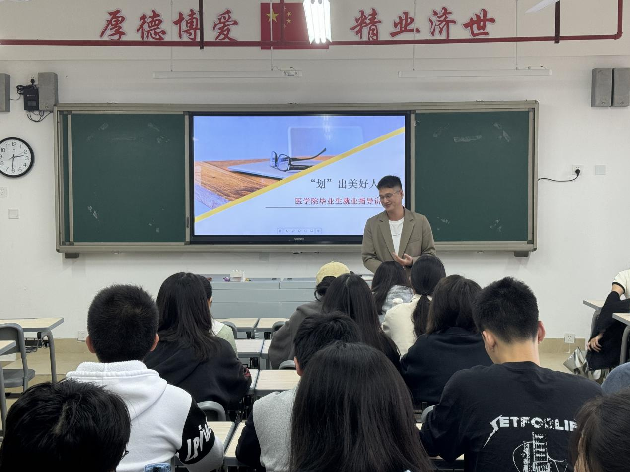 宣讲会上,吴金海老师深入剖析了当前药学专业毕业生的就业形势,通过对各类数据的解读和实际案例的分享,让同学们清晰地认识到药学领域的广阔前景与面临的挑战。吴金海老师紧密结合药学专业的特点,详细介绍了不同就业方向的发展路径,从制药企业的研发、生产岗位,到医院药房的药剂师岗位,再到医药销售、监管等领域,为同学们全面展示了药学专业的多元化就业选择,并鼓励同学们拓宽就业视野,积极关注新兴的医疗领域和就业机会,同时强调了持续学习和提升专业技能的重要性,为未来的职业发展打下坚实的基础。