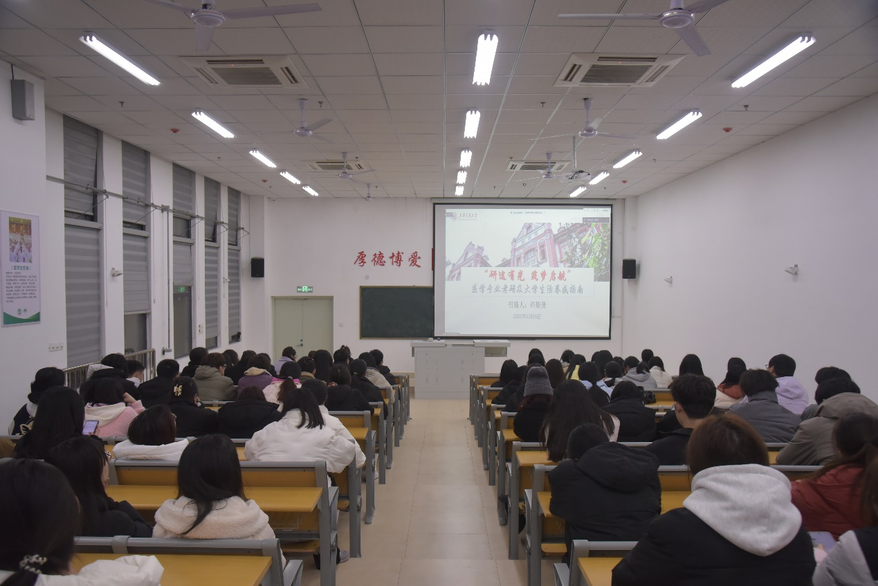 2月25日,我院举办《青柠职说》系列讲座——“医者仁心”:研途有光·筑梦启航,邀请2023届药学专业优秀毕业生许斯贤开展考研经验交流讲座,我院在校学生100多人现场聆听讲座。