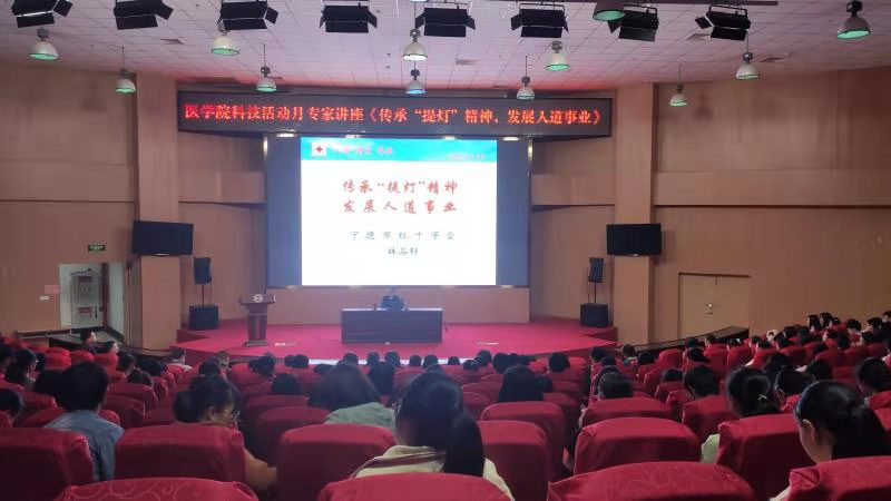 11月24日下午,宁德市红十字会常务副会长林品轩应邀为我院科技活动月开展题为《传承“提灯”精神,发展人道事业》的专题讲座,医学院师生近400人聆听讲座。