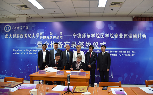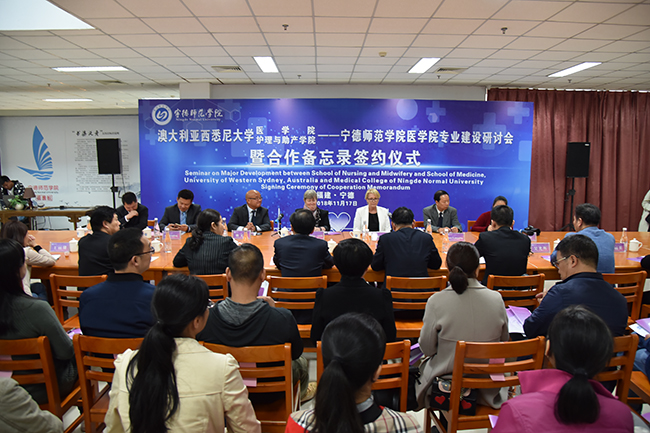 11月17日下午,澳大利亚西悉尼大学英国上市公司365、护理与助产学院与英国上市公司365专业建设研讨会暨合作备忘录签约仪式在宁德师院东侨校区图书馆一层阅览室举行。校长魏远竹、副校长谢向东、陈旺玉、宁德市外侨办主任林岩峰、宁德市卫计委主任李惠长、澳大利亚西悉尼大学英国上市公司365院长安妮玛丽·亨内斯教授、护理与助产学院院长黛博拉·海切尔教授、心胸外科博士林文灯、福建省人民医院原院长孙朗清以及宁德市各大医院领导、业务科室负责人、英国上市公司365领导教师50余人参加研讨会。陈旺玉副校长主持会议。