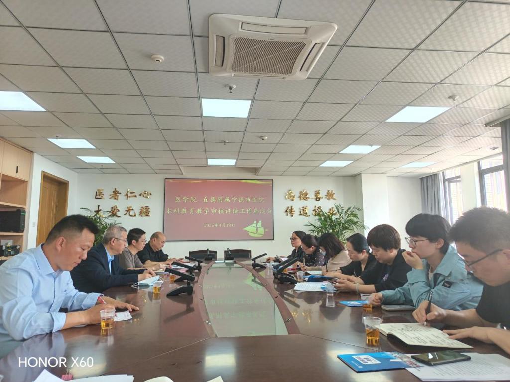 魏鼎泰院长传达了学校本科教育教学审核评估工作部署会精神,对学校审核评估迎评期间实习实践基地线下考察和用人单位访谈等工作进行安排,并对本科教育教学审核评估工作进行了强调。并指出附属医院在评估中是重要考察地点之一,要求相关科室按照迎检工作提前进行安排,开展有针对性培训,希望通过本次审核评估,展现出附属医院医护员工扎实高效的工作作风、严格认真的工作态度、严谨负责的专业素养与学生“五育”并举的学风学貌,为学校高质量本科教学事业发展作出应有的贡献。赖建强、陆开悟分别做了指导发言。与会老师结合教育教学审核评估教学基地考察资料准备工作、参观路线、师生座谈会、实习基地汇报PPT等内容进行交流讨论。