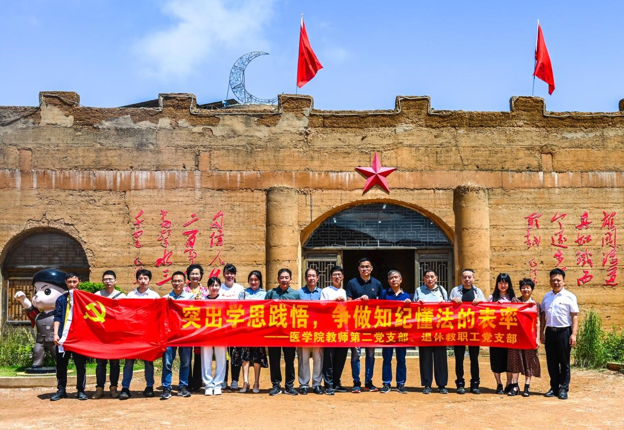 为推进党纪学习教育走深走实,5月26日,我院教师第二党支部与退休教职工党支部党员前往柘荣县西竹岔红色革命基地开展“突出学思践悟,争做知纪懂法的表率”主题党日活动。