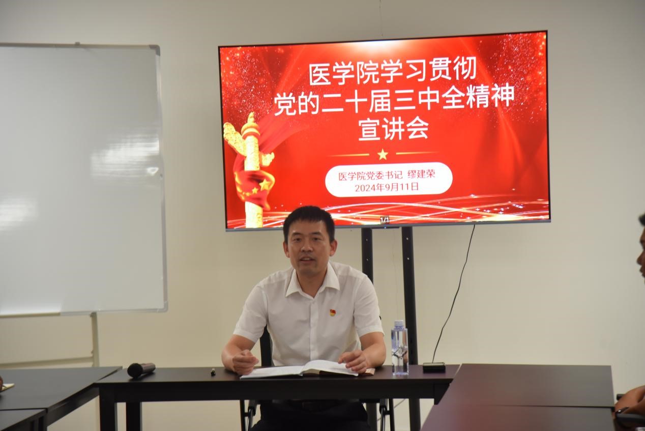 缪建荣指出,全院师生要增强学习贯彻全会精神的思想自觉和行动自觉,将党的二十届三中全会精神与自身发展紧密联系起来,在全会精神的指引下,以勇立潮头、勇当先锋的志向和气魄,坚定信念、不懈努力,真正把进一步全面深化改革战略部署转化为推动我院高质量发展的强大动力。