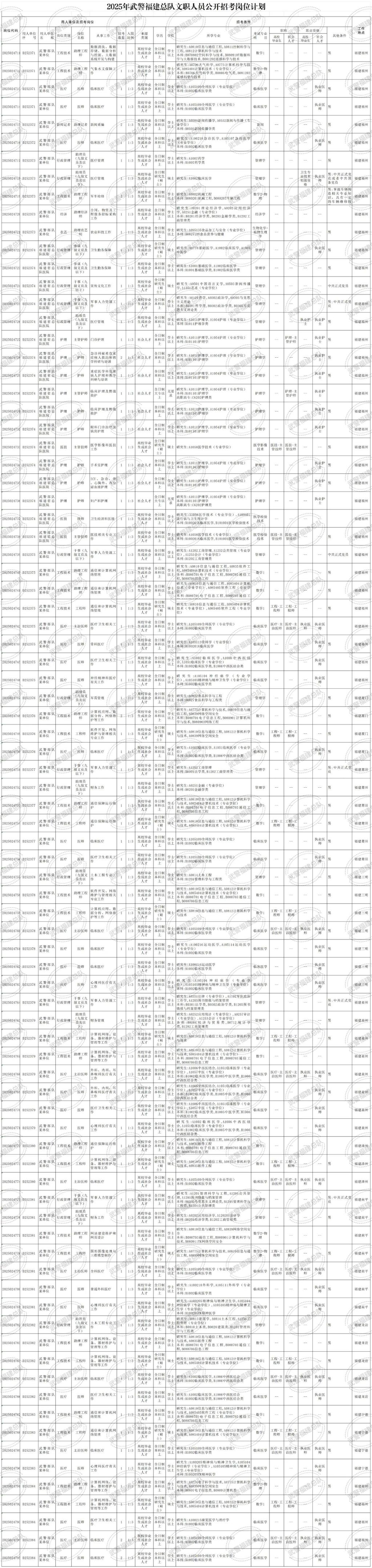 武警福建总队面向社会公开招考文职人员主要是在工程、医疗、记者和会计等专业技术系列初中级岗位,以及机关管理岗位。招聘单位主要是武警福建总队机关及驻地市级城市的支队机关和医疗机构。具体岗位如下: