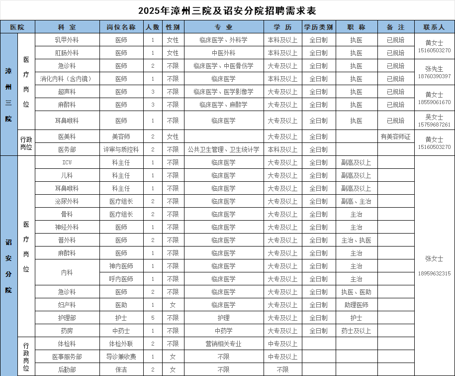 漳州市第三医院发布招聘公告