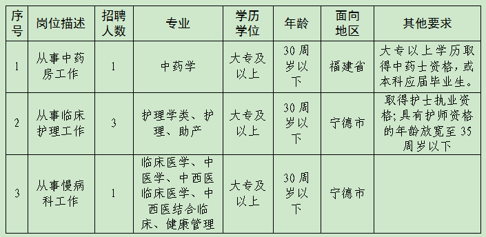 地址:寿宁县中医院门诊楼六层人力资源管理科