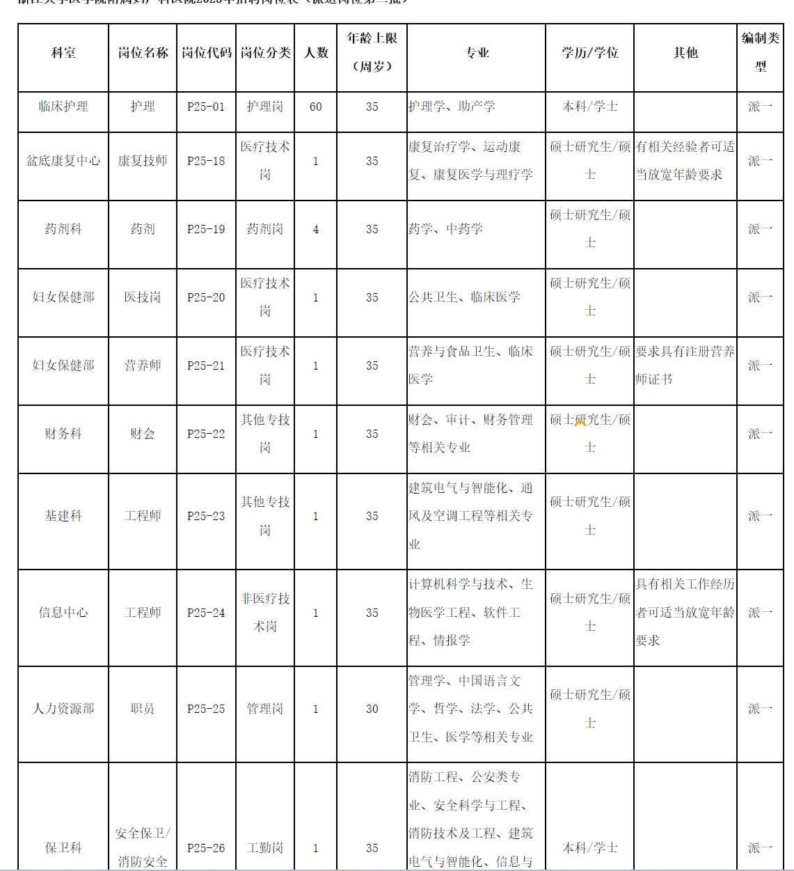 招聘岗位要求详见附表《浙江大学英国上市公司365附属妇产科医院2025年招聘岗位表(派遣岗位第二批)》,说明如下: