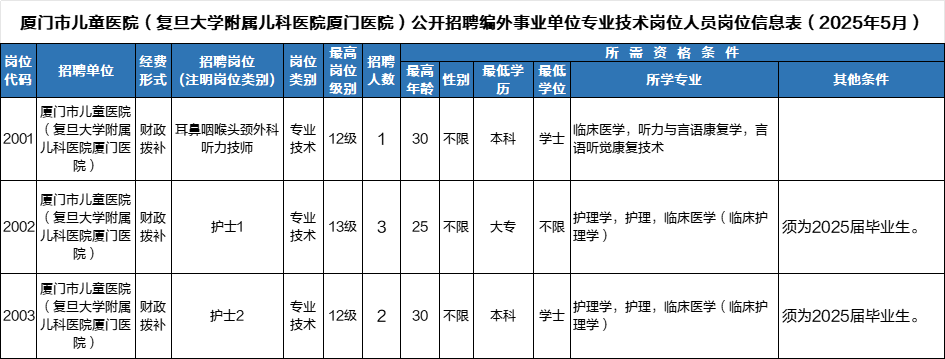 《厦门市儿童医院公开招聘编外事业单位专业技术岗位人员报考须知(2025年5月)》(附件1,以下简称《报考须知》)属于公告的组成部分,请报考者认真阅读并遵守。